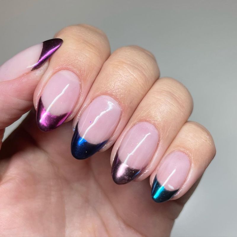 Abbiamo parlato, finora, di Chrome French Nails realizzate con i classici colori metallici, quindi oro e argento, ma questi non sono di certo l’unica opzione. Le Chrome French Nails dell’Estate 2022 sono anche coloratissime e vivaci, nel segno di una maggiore originalità. Specialmente per il periodo estivo, giocare con il colore è sempre un’ottima idea, bellezze!