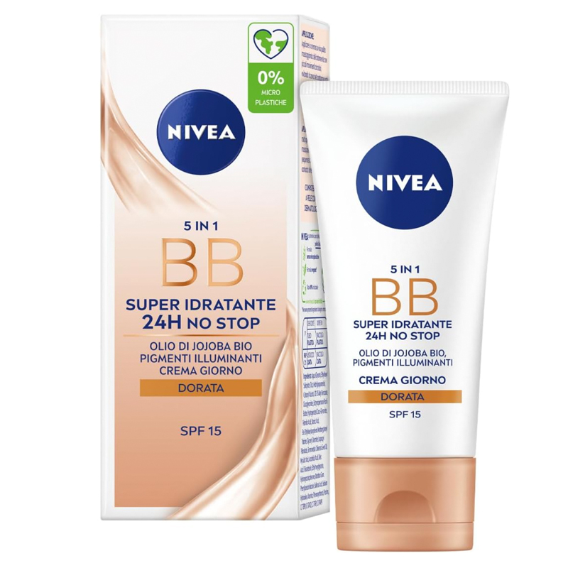Infine, vi proponiamo la BB Cream Super-Idratante 24H No Stop Nivea, una crema viso giorno arricchita con olio di Jojoba Bio e provitamina B5. La formulazione super idratante illumina, uniforma e corregge le piccole imperfezioni del viso.
