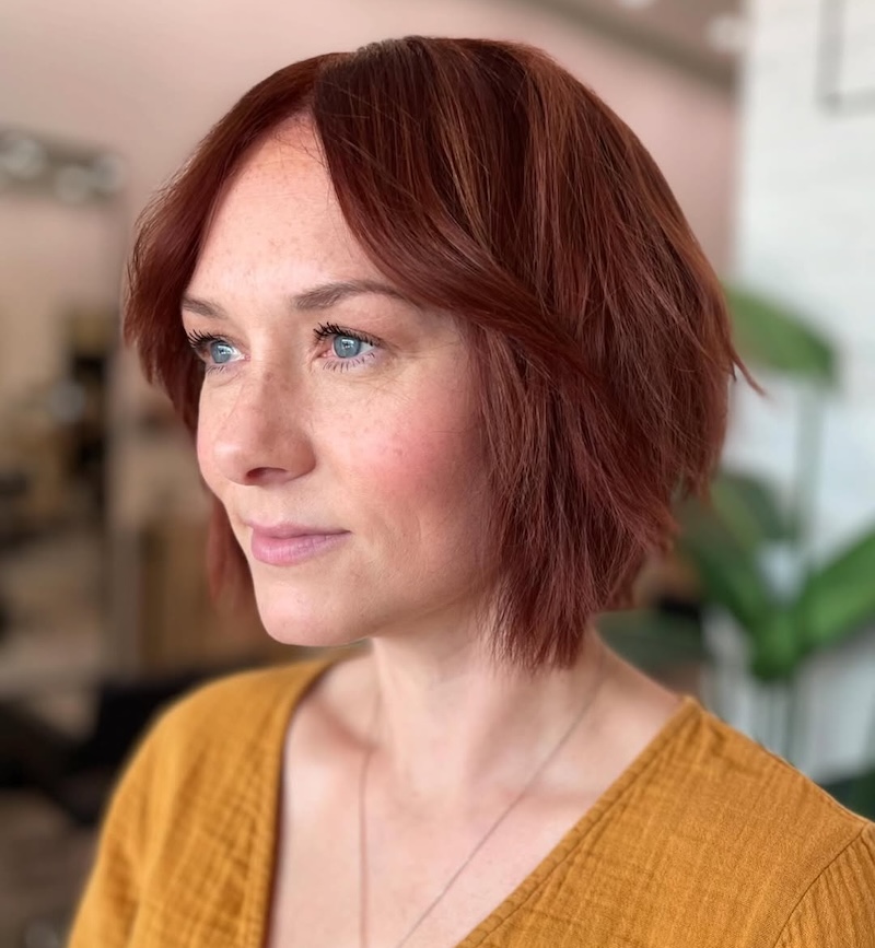 Quali tagli preferire per valorizzarlo? Il colore capelli Auburn Red Scuro performa molto bene sia sui tagli lunghi pari che su quelli scalati e sfilati, come lo Shag o il Butterfly Cut.