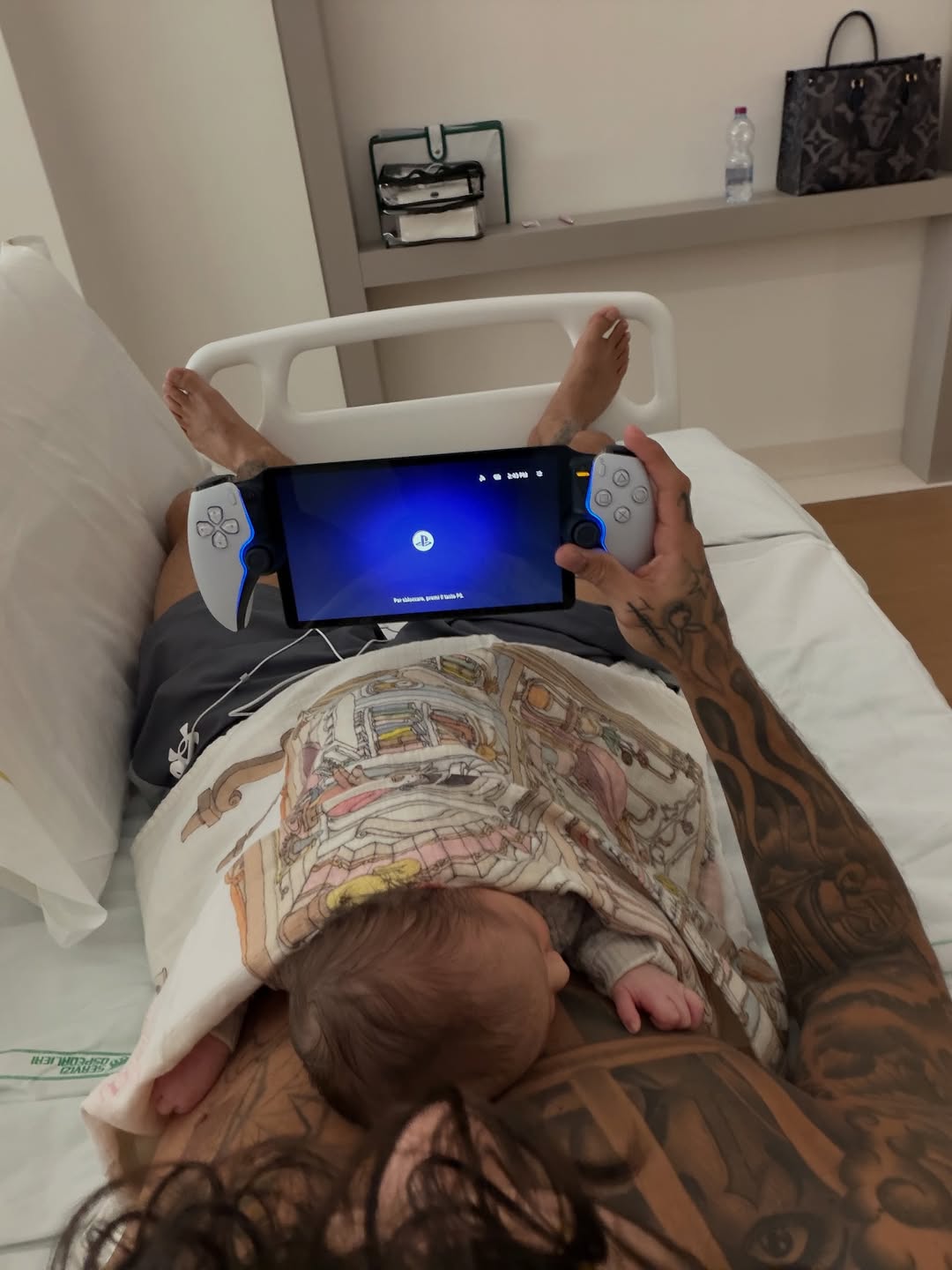 Nelle foto Tony mostra anche il sostegno alla compagna che si accinge a partorire, il biberon e i nonni, il contatto skin to skin, ma, come è giusto che sia, non si dimentica di fare smorfie e giocare alla Play Station.