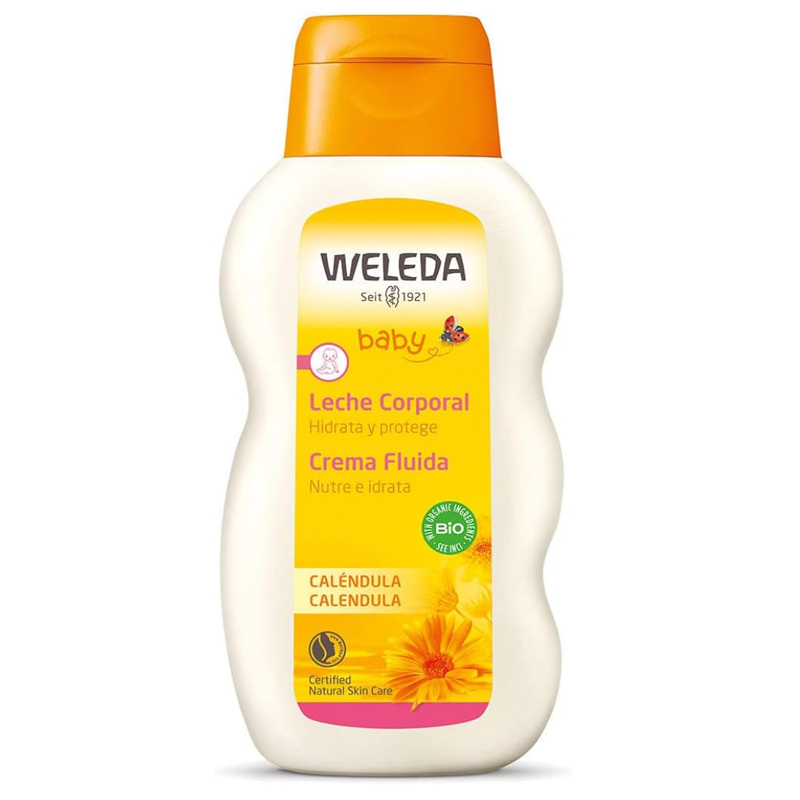 Completamente naturale e arricchita da estratto di Calendula, è la crema baby in casa Weleda. Si tratta di un latte corpo a base di olio di sesamo, mandorle dolci e camomilla. Ideale sia sui bimbi ma anche per adulti con pelle secca e fragile. A pelle pulita e asciutta, applicare qualche goccia e massaggiare delicatamente fino al completo assorbimento.