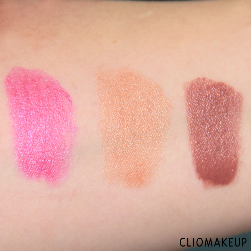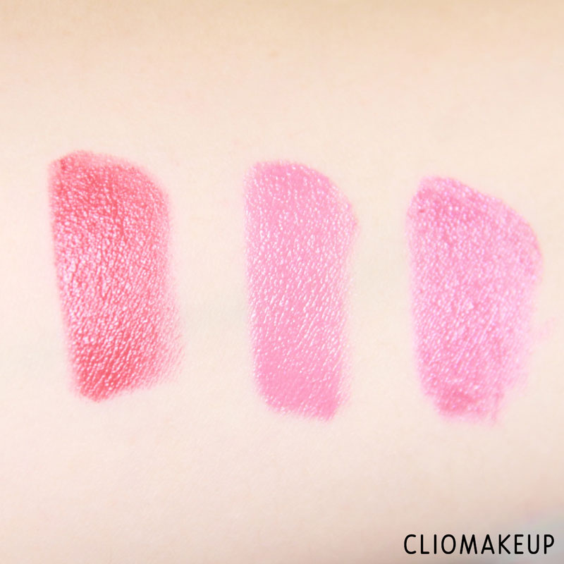 Iniziamo subito vedendo tutti gli swatch dei rossetti testati. Partiamo quindi con i primi tre: 73 Lively Red, 75 Pearly Pink, 76 Dark Rose.