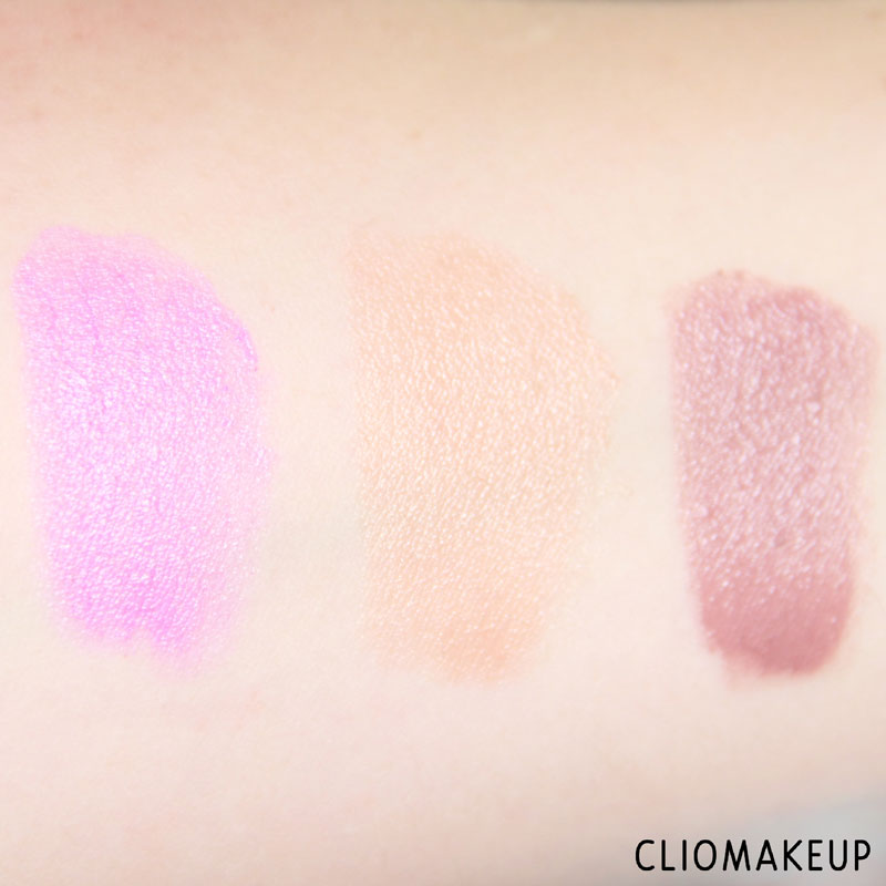 Swatch realizzato con luce artificiale. Da sinistra: 77 Fuchsia, 78 Perfect Nude, 80 Rose Nude.
