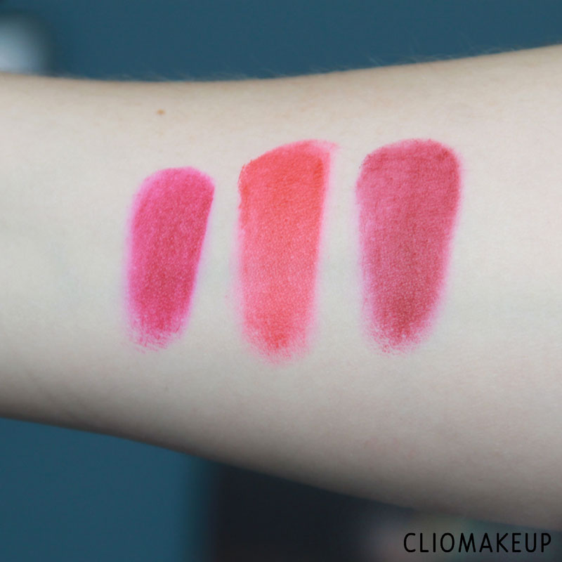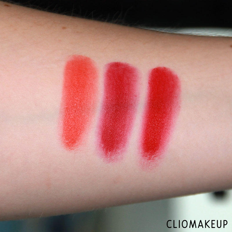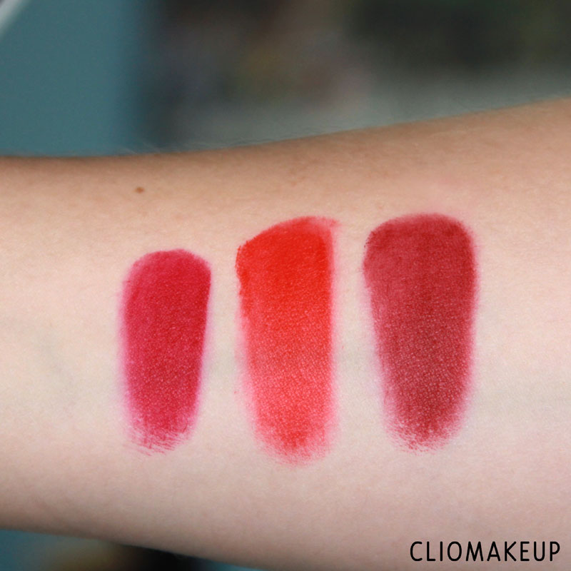 Beh belle sono belle! Soprattutto quella con i colori viola/prugna… Questi rossi non mi convincono, sembrano altrettanto belli e diversi swatchati sul braccio, ma poi sulle labbra sembrano tutti uguali