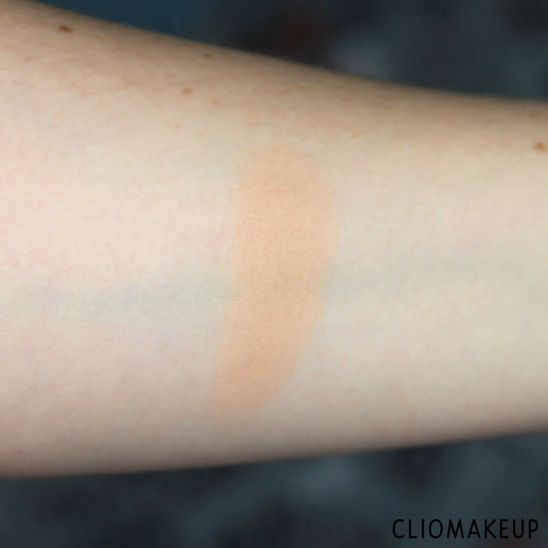 Al tatto risulta quasi cremoso. Già dallo swatch possiamo vedere che il colore ha una tonalità media, quindi non adatto alle pelli più chiare. Il finish non è opaco ma sheer, e dona dei leggeri riflessi effetto “pelle sana e splendente” :-).
