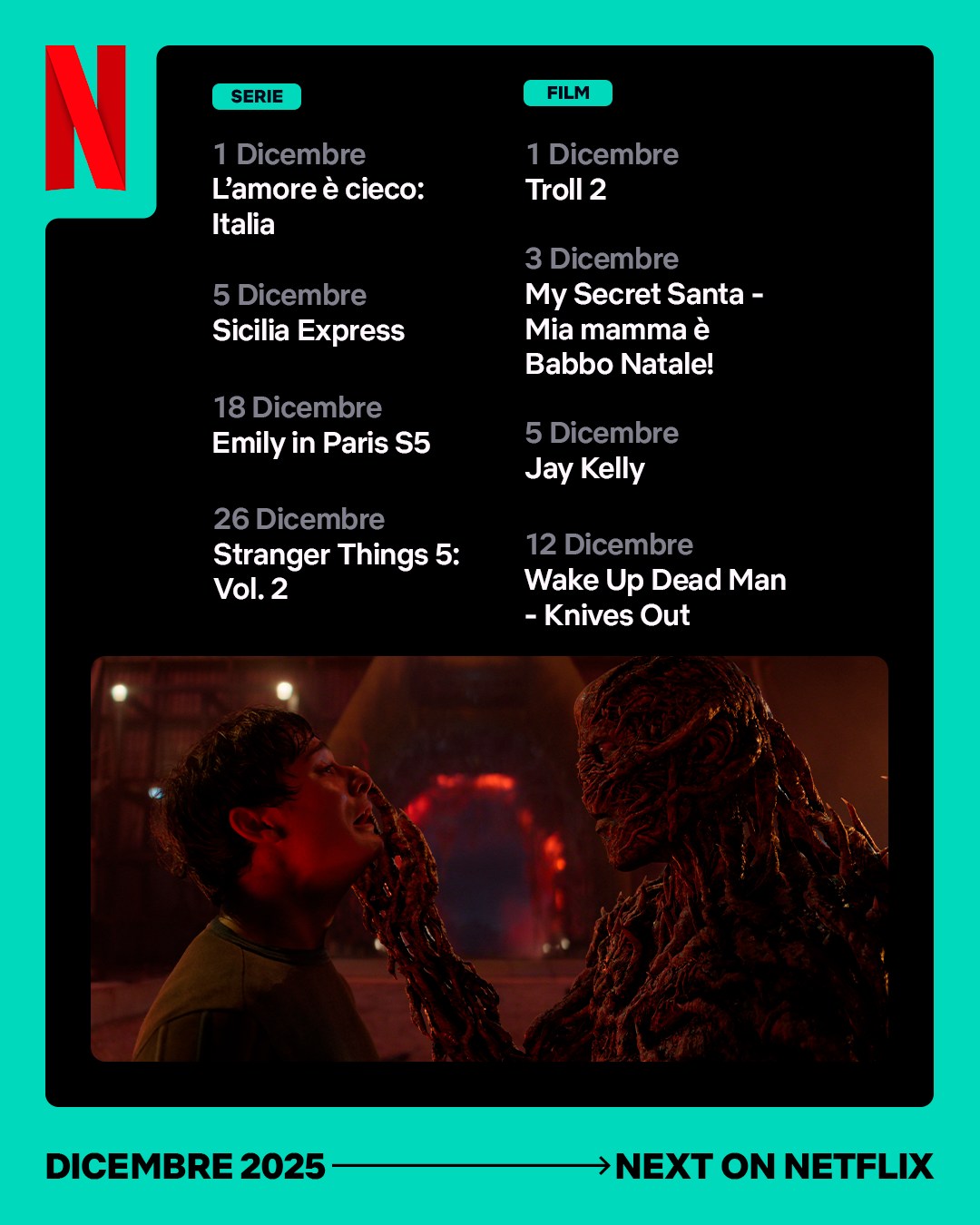 - C’è ben poco da fare, la programmazione Netflix di dicembre 2025 è contrassegnata dagli ultimi due capitoli di Stranger Things.