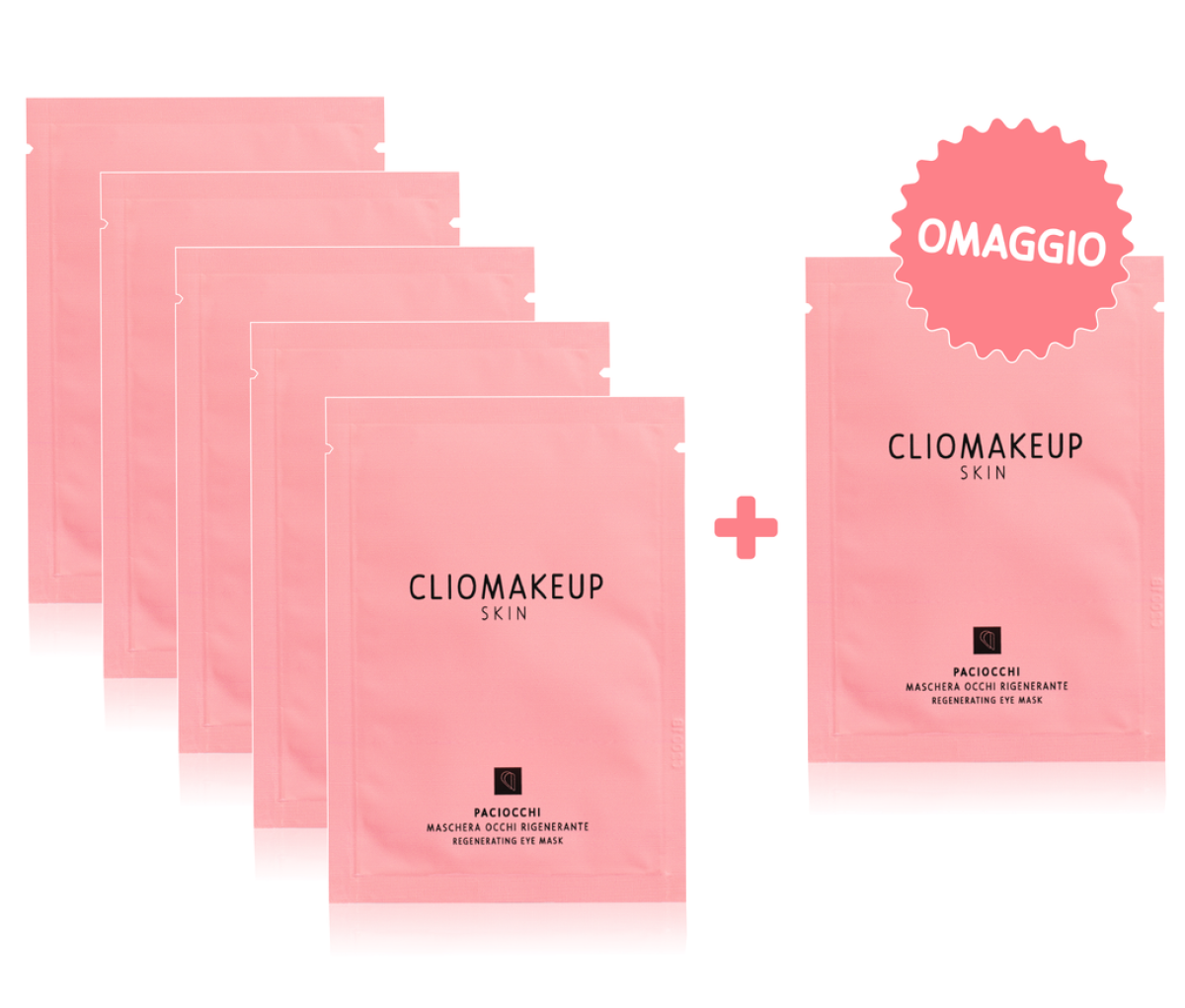Niente a cui non si possa rimediare, ragazze e ragazzi, grazie a una skincare routine efficace e delicata allo stesso tempo, con i prodotti ClioMakeUp SKIN. Vi consiglio di approfittare della PROMO SAVE THE BEFANE 2022 per riempire la vostra calza con il KIT PACIOCCHI: il kit comprende 5 confezioni di Paciocchi + 1 in omaggio! I Paciocchi sono tra i nostri best seller più amati, la eye-mask in tessuto-non-tessuto arricchita da un potente pool di ingredienti premium e di attivi funzionali dall’azione idratante, illuminante, levigante e rimpolpante.