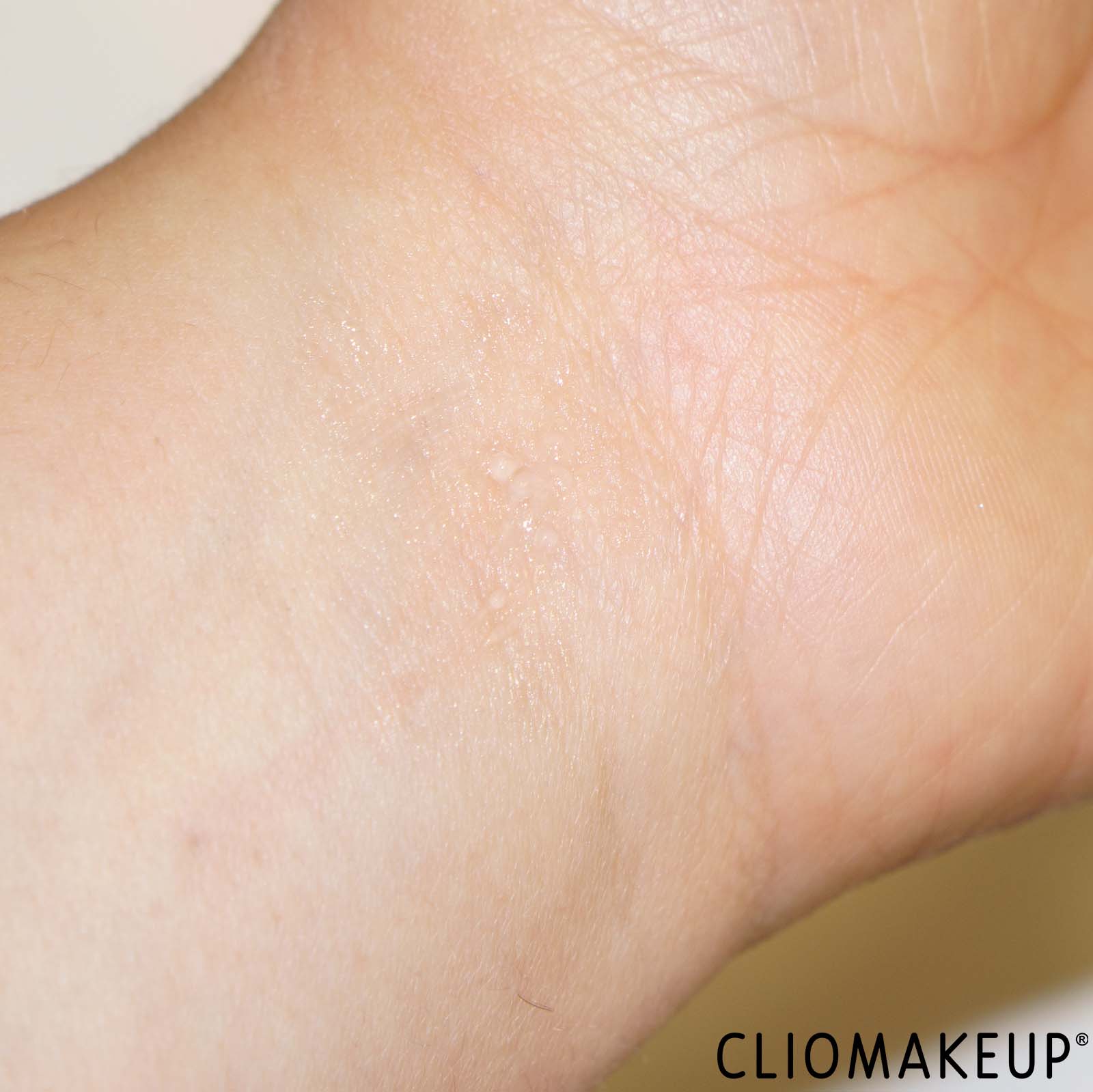 L’applicatore è costituito da piccole setole che raccolgono la giusta quantità di prodotto. La texture è sottile e non appiccica molto. Infatti, non tende a tirare la pelle. Il finish finale è trasparente e non particolarmente lucido, un effetto molto naturale che apprezziamo particolarmente.