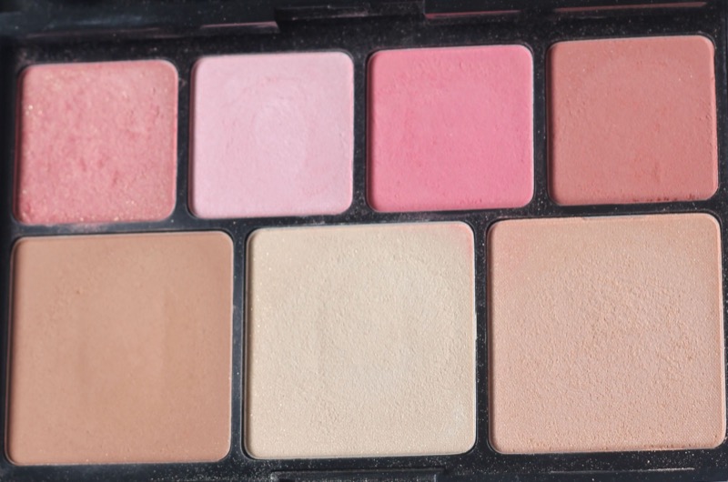 Sopra, i quattro blush, sotto il bronzer e i due illuminanti