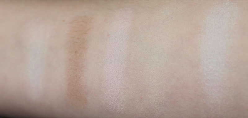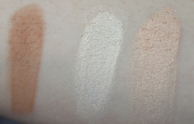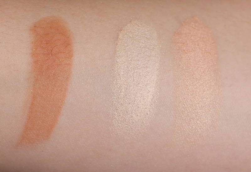 A sinistra il bronzer, a destra i due illuminanti. Swatch con luce naturale