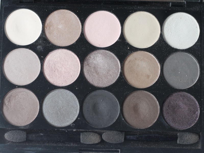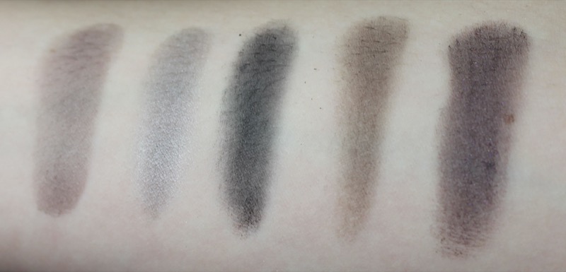 Come detto in precedenza i colori degli ombretti sono 15, la maggior parte sono dal finish brillante e sono tutti colori tendenti al grigio-rosato. A differenza delle classiche palette tendenti ai colori nude questa si differenzia per il fatto che non sono presenti colori caldi. Ma vediamo insieme gli swatch.