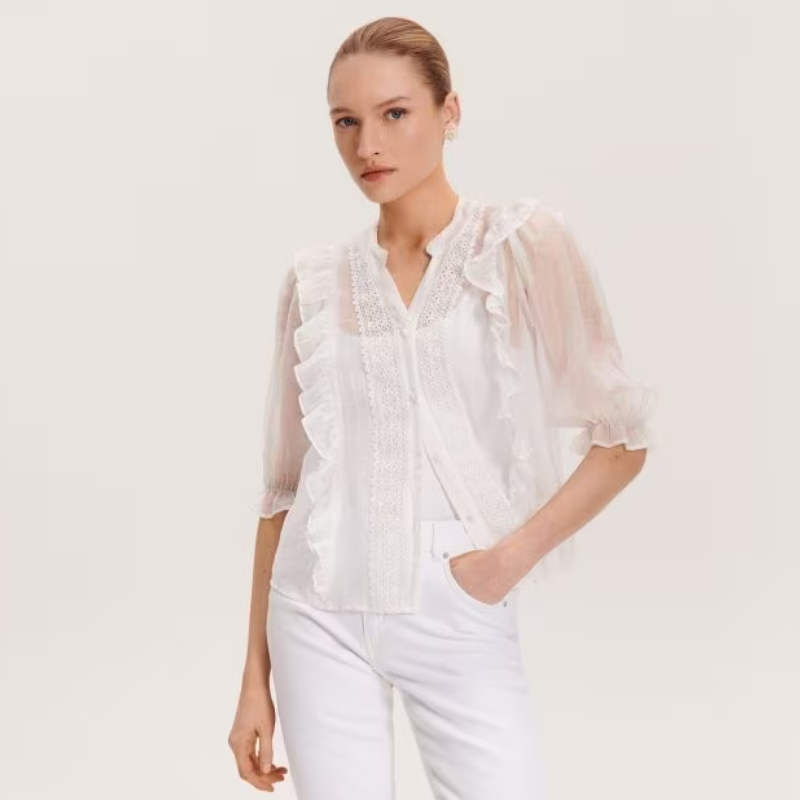Restando a tema total white, Reserved ha creato tantissime bluse. Dai colori neutri a quelli pastello, tutte sono accumunate da un’unica attitude: la leggerezza e la freschezza dei tessuti. Con inserti trasparenti o nella versione classica in satin, le bluse bianche sono dei salva look intramontabili. Chic e romantiche, sono dei pass-par-tout nel guardaroba di qualsiasi donna.