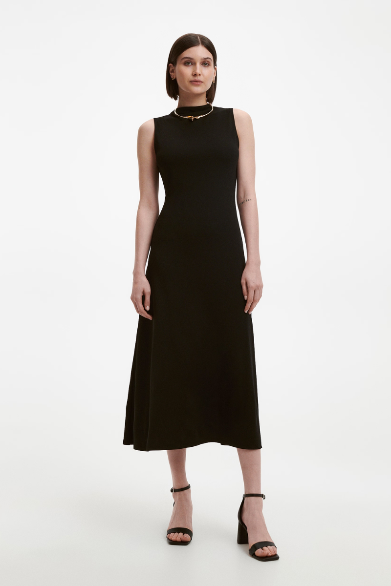 L’abito nero è immancabile anche in estate e per questa stagione Reserved lo propone in una versione bon ton e sofisticata. Semplice e con i volumi al posto giusto che caratterizzano la figura.