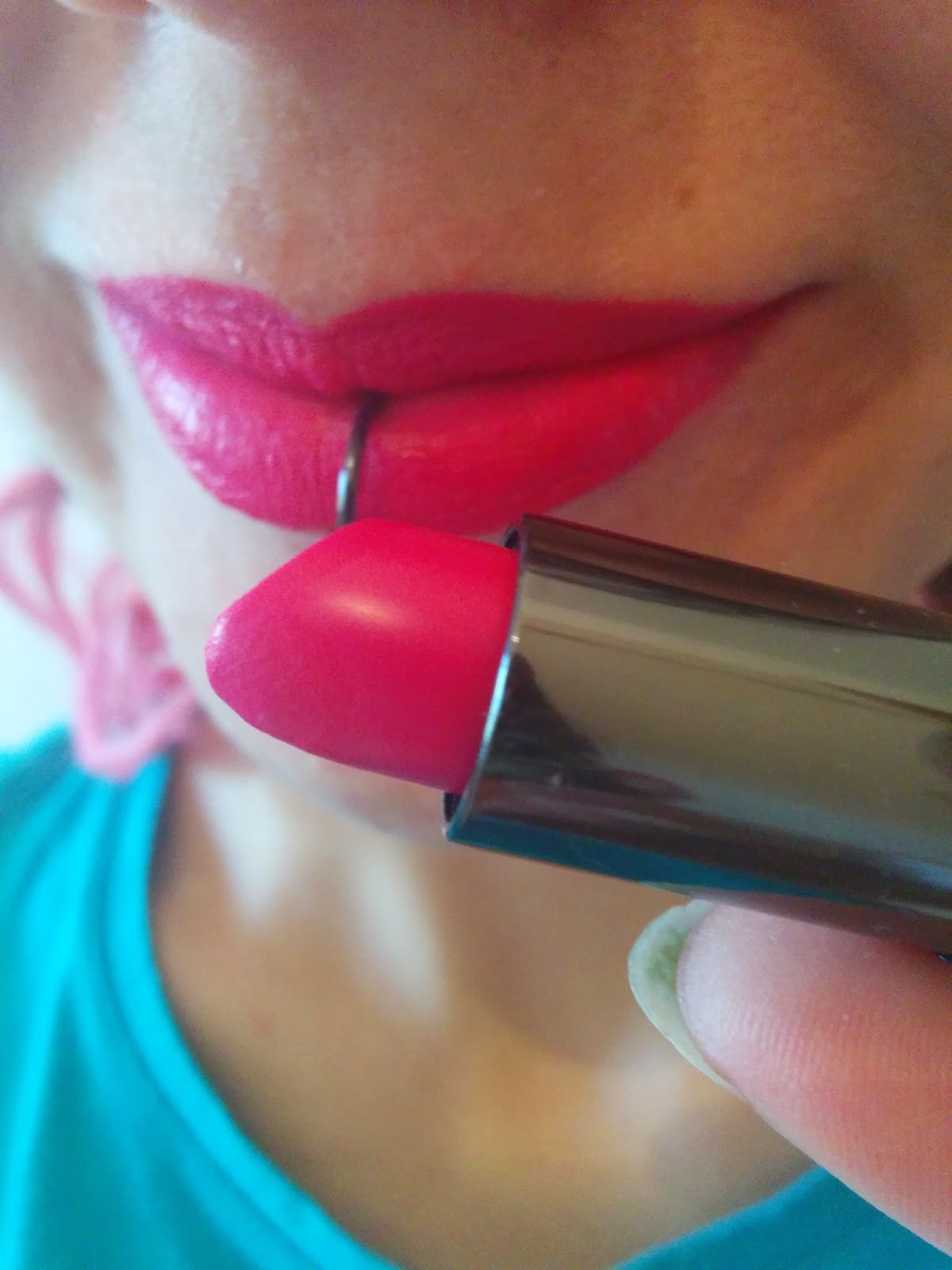 La scorsa settimana mi ero fissata che volevo un rossetto di questo colore, e alla fine mi sono fatta tentare dai saldi… ma mi sa che le luci del negozio me ne hanno fatto comprare uno forse leggermente più scuro… Non so, anche perché non capisco bene la differenza col fucsia