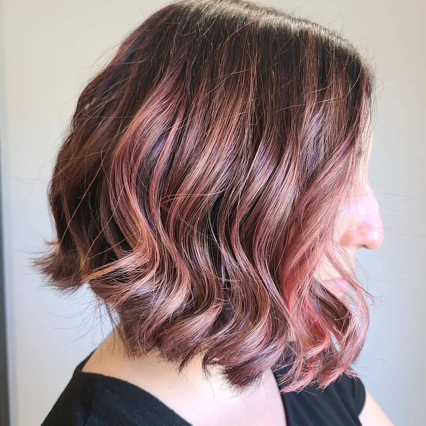 Credits: @pureluxesalon Via Instagram – Riflessi fragola su capelli castani dal taglio medio