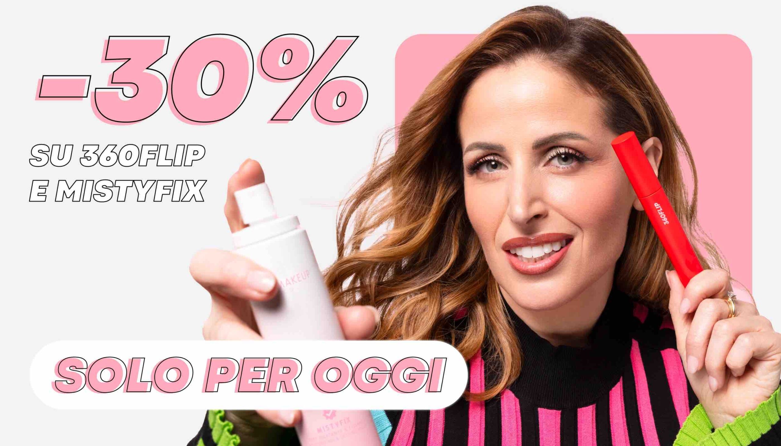 Solo per martedì 5 marzo 2024 sul ClioMakeUpShop il mascara 360FLIP e lo Spray Idratante & Fissante MISTYFIX sono scontati del -30%: un’occasione unica di cui approfittare subito!