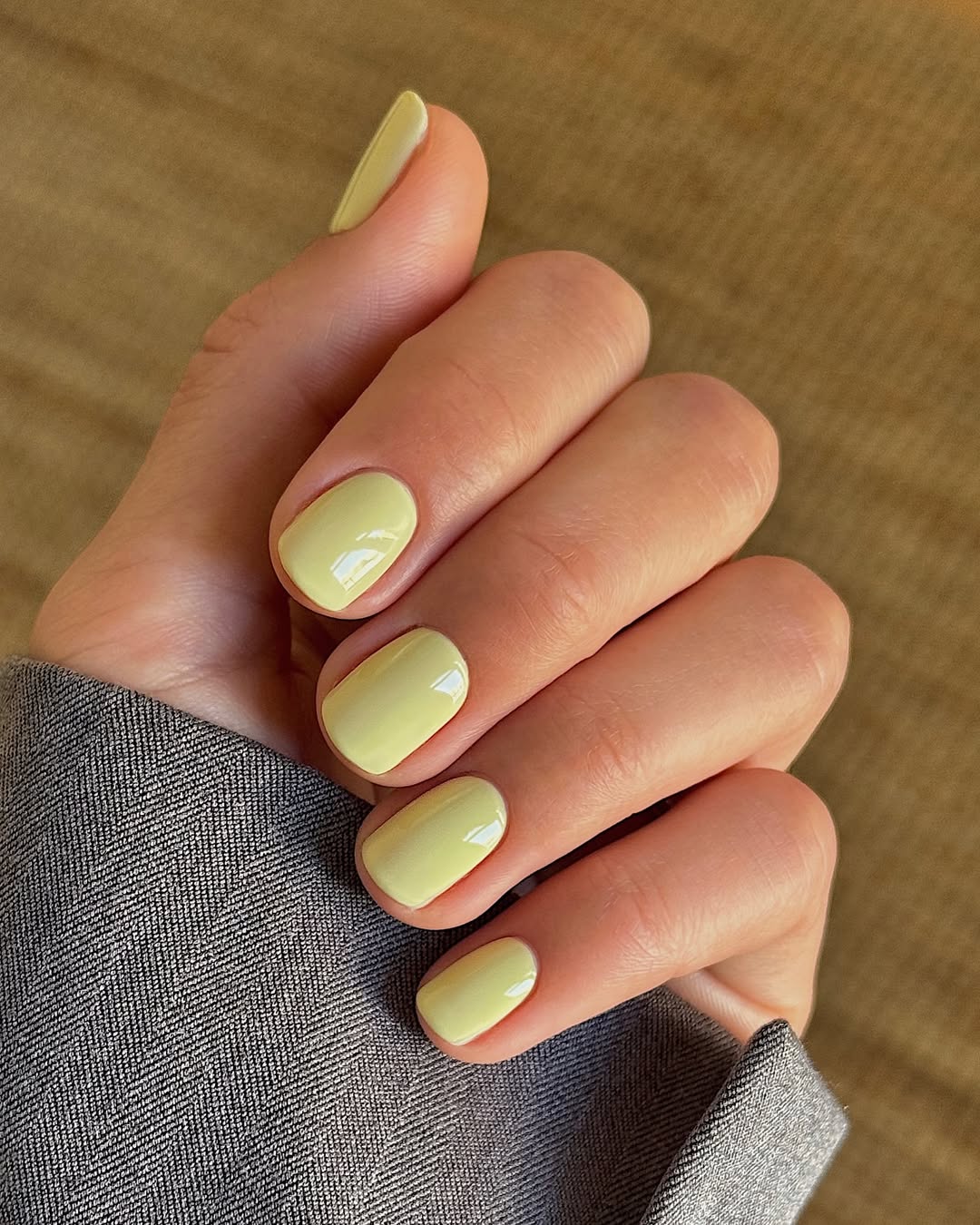 Ormai è un dato di fatto. Il giallo, in particolar modo nella variante burro e pastello, sta letteralmente spopolando sia per quanto riguarda la moda che per quel che compete il beauty. Le unghie corte gialle saranno un must di questa Estate 2025.
