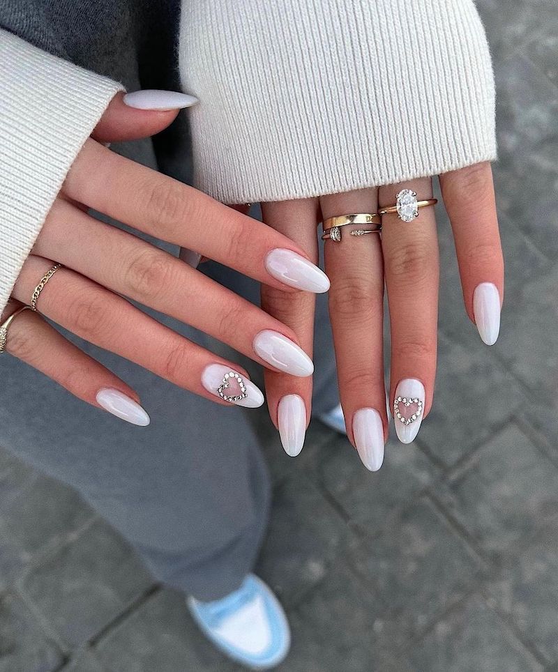 Le unghie semplici con brillantini, per esempio, sono un’idea glamour e femminile. Gli strass si possono mettere su tutte le unghie, solo su alcune oppure possono essere utilizzati per creare disegni, come nel caso di questa nail art con cuore sparkling.